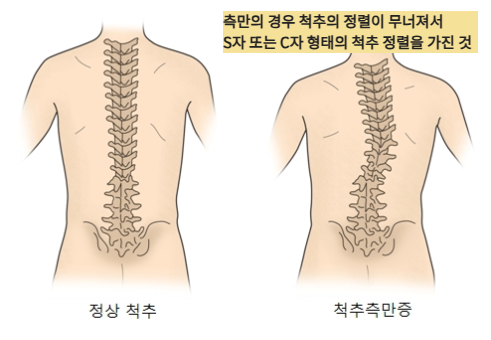 • 주로 성장기 청소년에게 나타나는데, 책상에 앉아서 공부하는 시간이 많아지면서 올바르지 않은 자세로 오래 앉아서 공부하다보니 측만증이 많이 발생하는 것 같다.