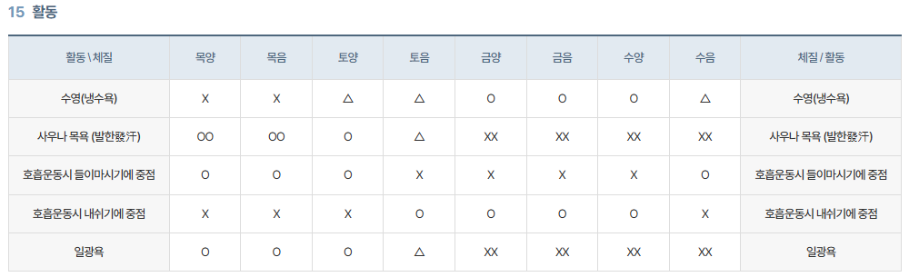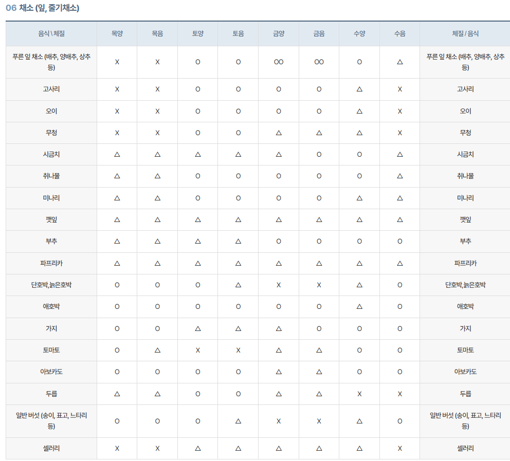 - 신체적 특징: 대사 활발, 더위를 잘 탐 추천 음식: 시원한 음식, 채소류