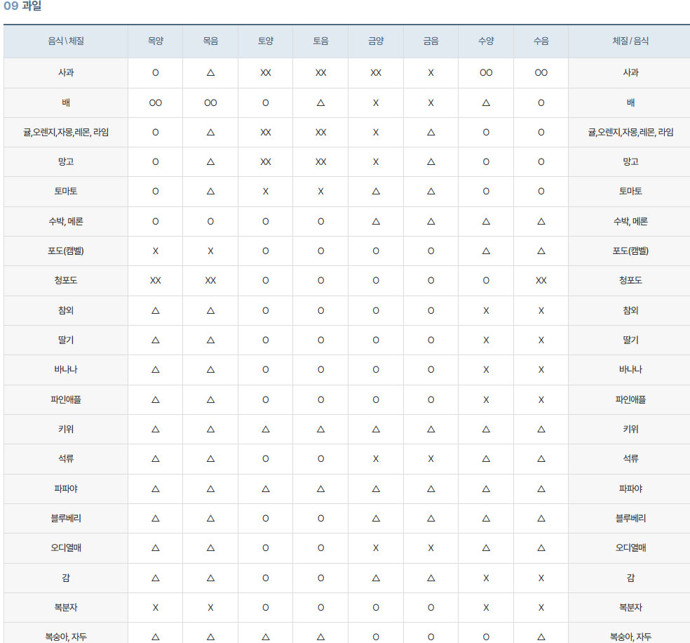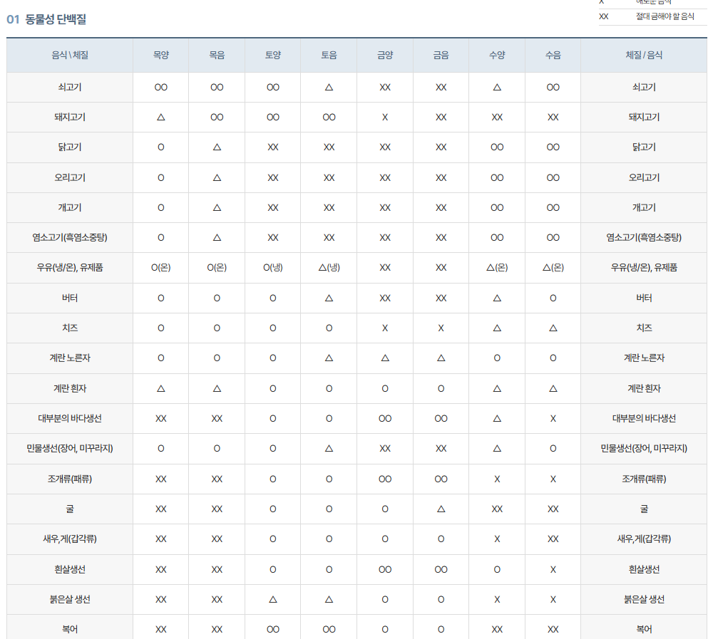 8체질 섭생표란?