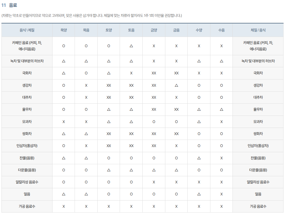 - 추천 음식: 따뜻한 차, 익힌 채소