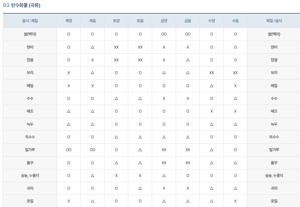 - 추천 음식: 고기, 곡류